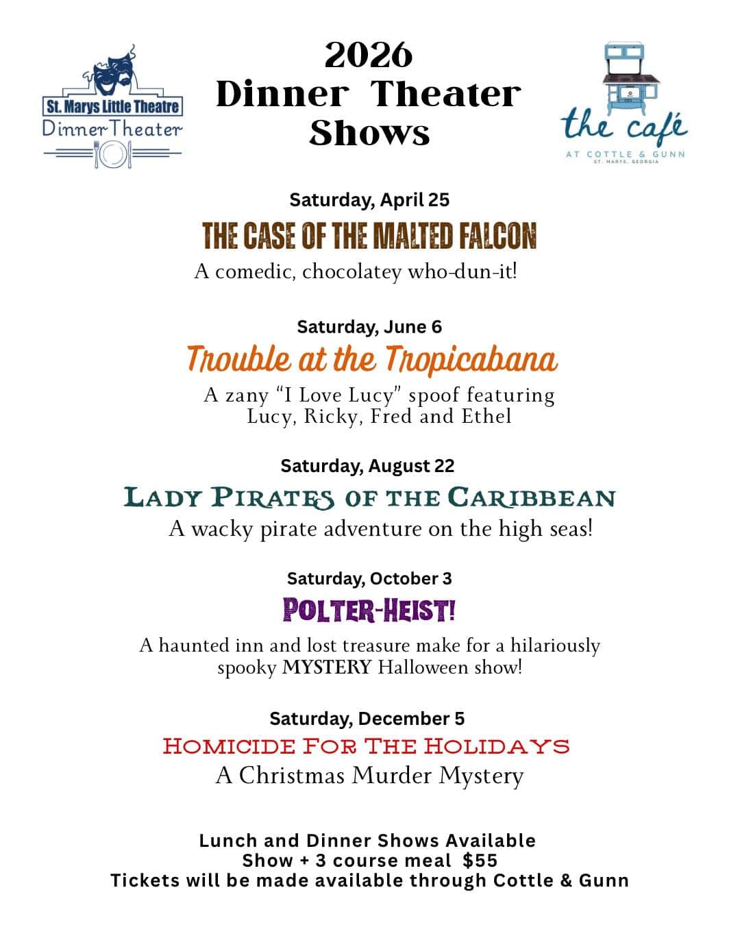 The Café at Cottle and Gunn | Saturday, June 6 | Tickets Required St. Marys Little Theatre will present "Trouble at the Tropicana: A zany 'I love Lucy' spoof featuring […]